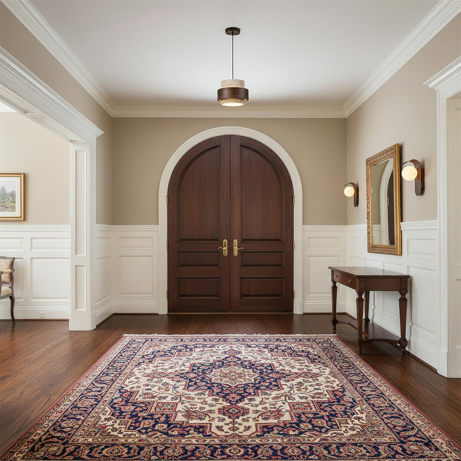 - Elegancia versátil: Combina piedra rústica con detalles modernos de madera y metal, haciéndola adaptable tanto a interiores contemporáneos como clásicos.