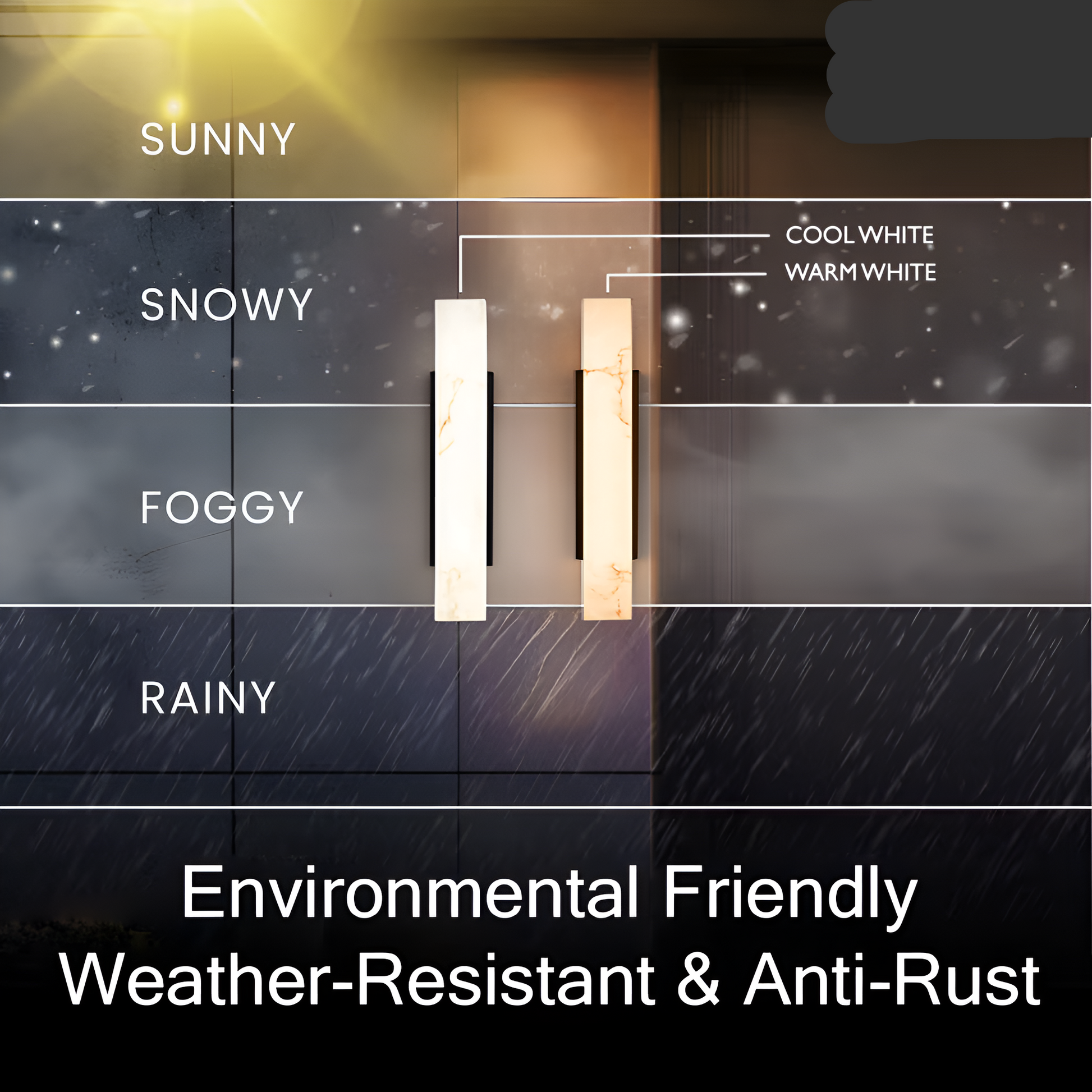 - Acabado de mármol genuino – Añade textura orgánica y encanto sofisticado a las paredes exteriores